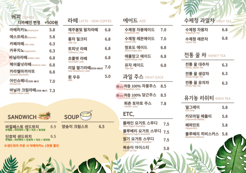 요즘 물가가 너무 비싸져서 전망좋은 카페를 가도 보통 8-9000원은 한다.