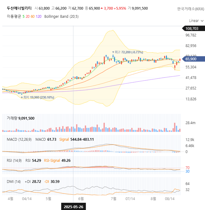 - 두산에너빌리티는 강력한 중장기 추세를 가졌으므로, 펀더멘털과 차트의 긍정적인 신호를 믿고 보수적인 관점에서 '눌림목'을 기다리는 전략이 가장 유리해 보입니다.