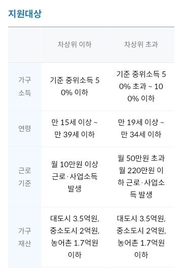 근로빈곤층 청년의 생계수급자 등으로의 하락을 미리 예방하고 일하는 중간계층 청년이 사회에 안착할 수 있도록 지원하는 제도입니다.